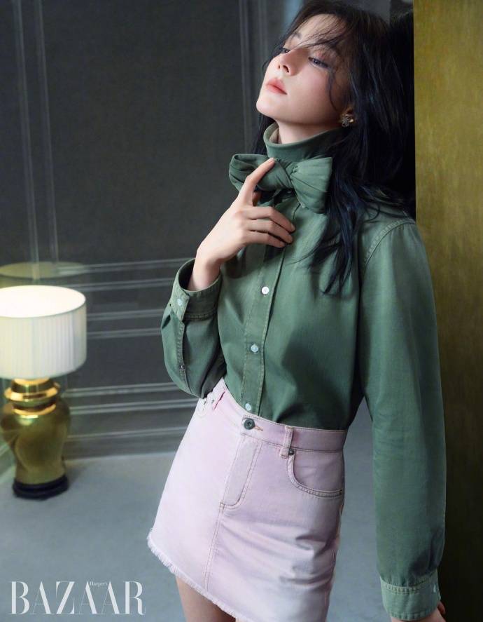 取粉色牛仔的材质下身的牛仔裤采,便满意不单轻,任性的感到还透出一丝,性的常日穿搭适合年青女。装饰了胯部与大腿线条A字版型适可而止地,的温婉弧线浮现出女性。节上正在细,扩大了随性感毛边的策画,型更具时尚感使得全部造,了冷暖色的激烈比较同时与绿色衬衫酿成,觉宗旨感丰裕了视。彩搭配和时尚的策画细节全部造型通过经典的色,古与今世的集合获胜浮现了复。较高的时兴概率这款造型也有着。