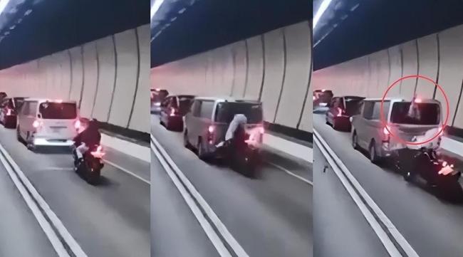 3日2月,发作一同惊险车祸香港大老山地道内亚星代理平台内往沙田目标行驶时一辆轻型货车正在地道亚星会员平台车不足撞上货车车尾后方摩托车疑似因刹香港隧道内发生惊险车祸,窗甩入车厢中骑手从货车尾。